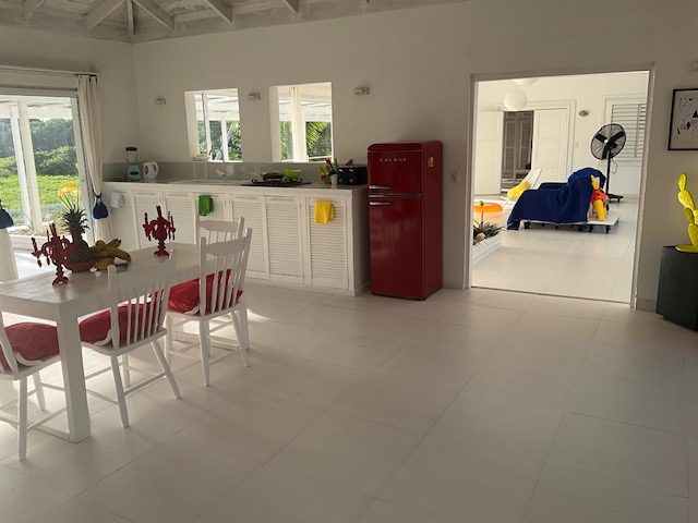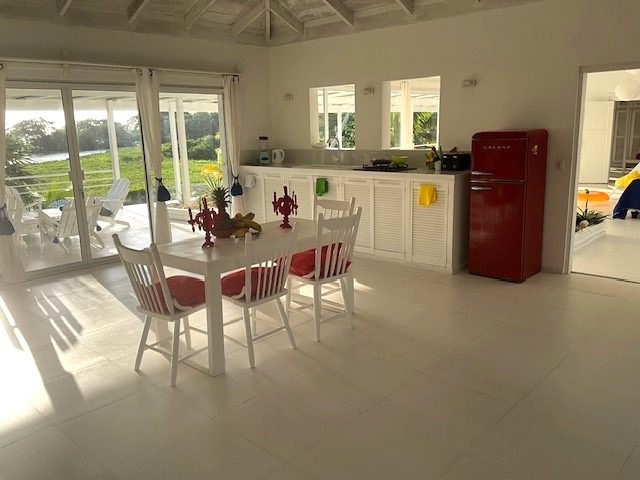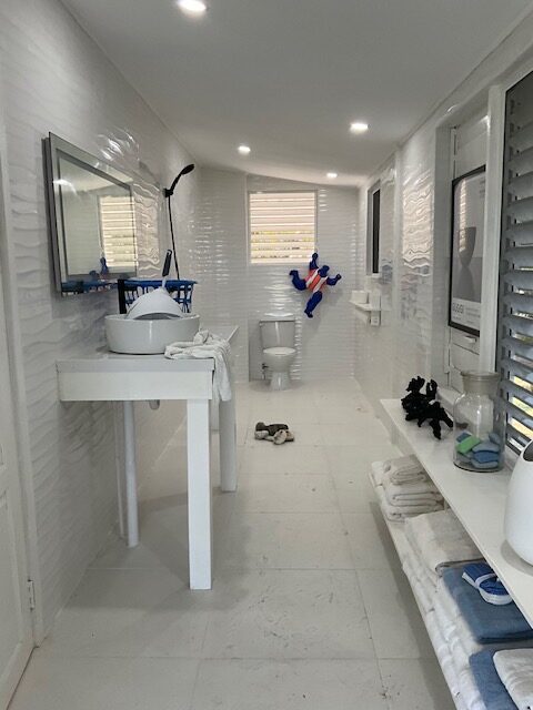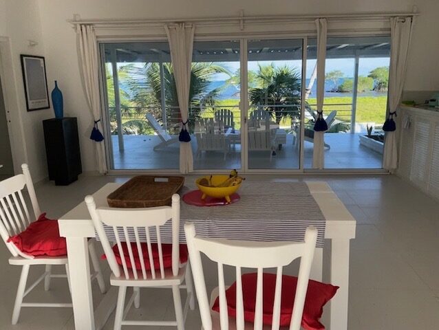 - Upstairs, you are welcomed into a space filled with whiteness, light, and air. Floor-to-ceiling windows frame breathtaking views of the turquoise Caribbean Sea for miles, where the water meets the Belize Barrier Reef on the horizon — a view that can be enjoyed from every room. This level features a master bedroom/bathroom, an open living area, and a kitchen, all designed to embrace the surrounding beauty. A separate bathroom,