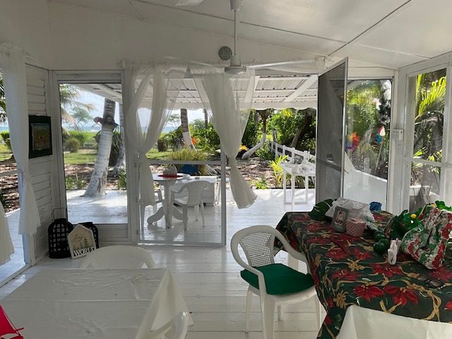 As you enter the property, you are immediately immersed in a tropical haven. The land boasts many mature palms and lush native trees, while to the East the sea stretches endlessly ahead, creating a sense of calm and connection with nature. The far North of the island is currently off-grid, so rainwater catchment tanks and solar are included with this property, but would need upgrading for more occupants.