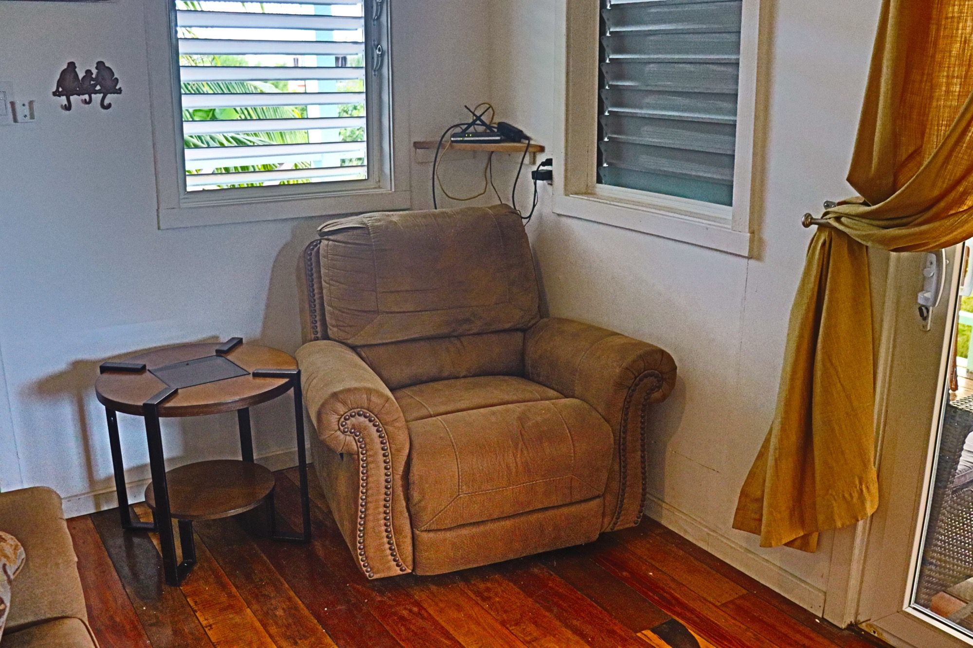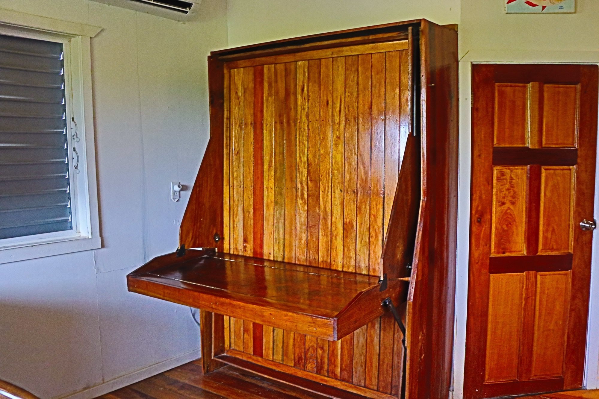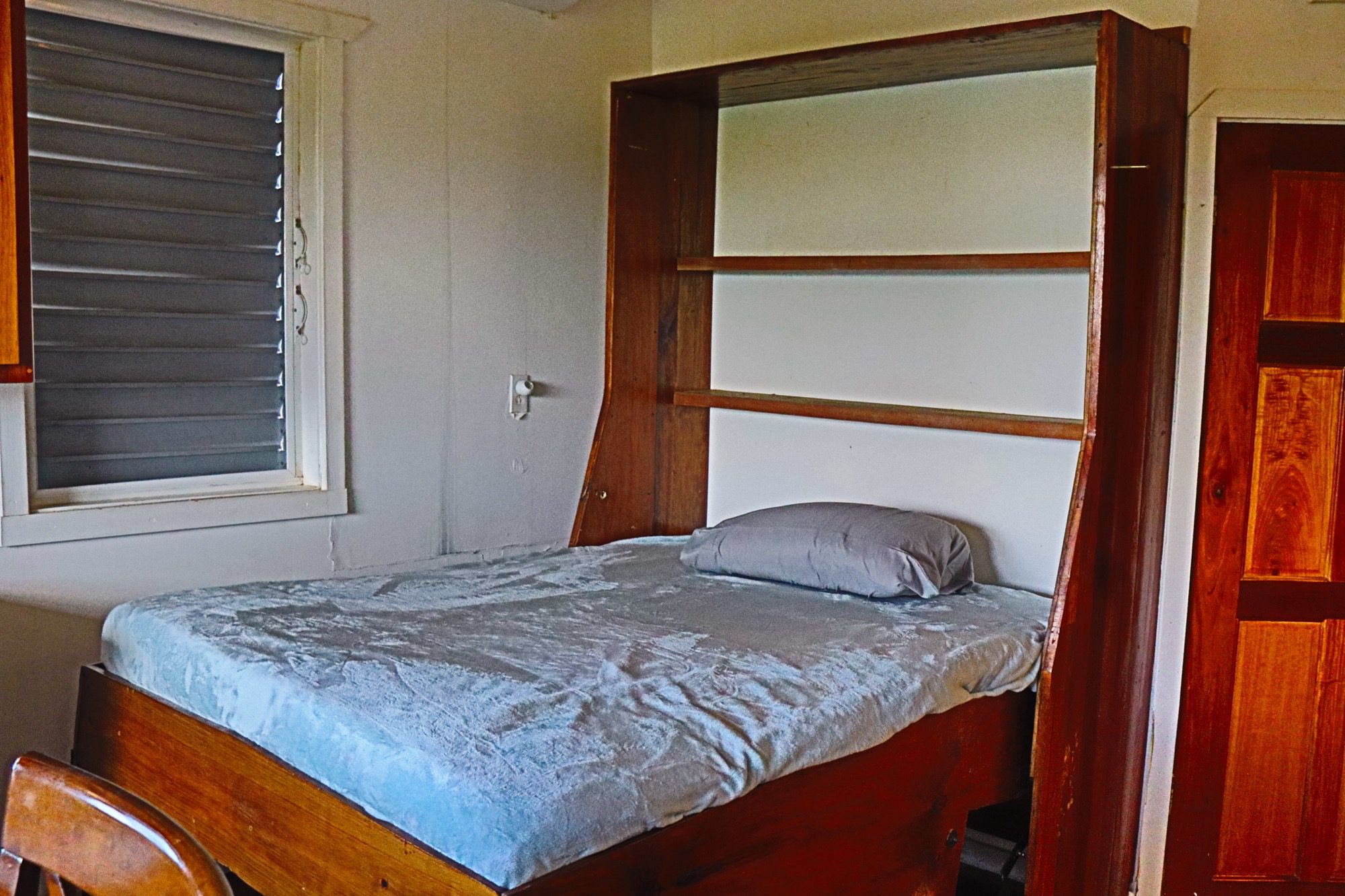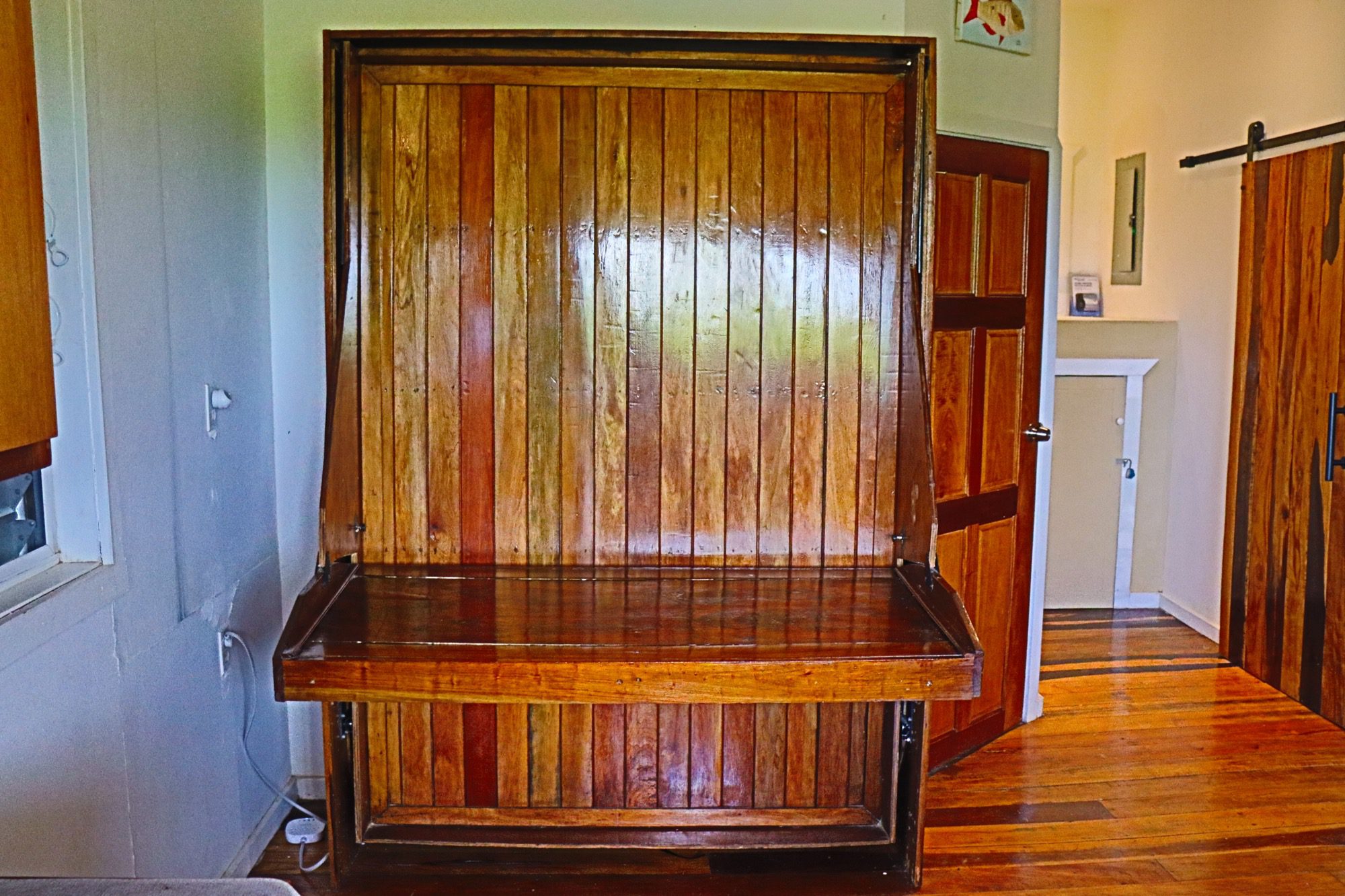 Thoughtfully designed, the home features a primary bedroom plus a built-in Murphy-style shelf bed, allowing for additional sleeping space for guests or family. There is also the potential to create a loft-style sleeping area above the bedroom, accessed through the hallway ceiling hatch. This would not only increase accommodations but also offer lovely sea views.