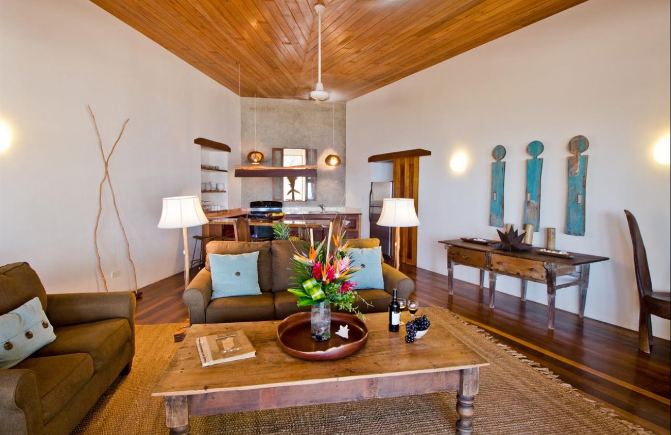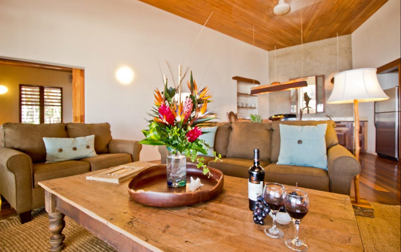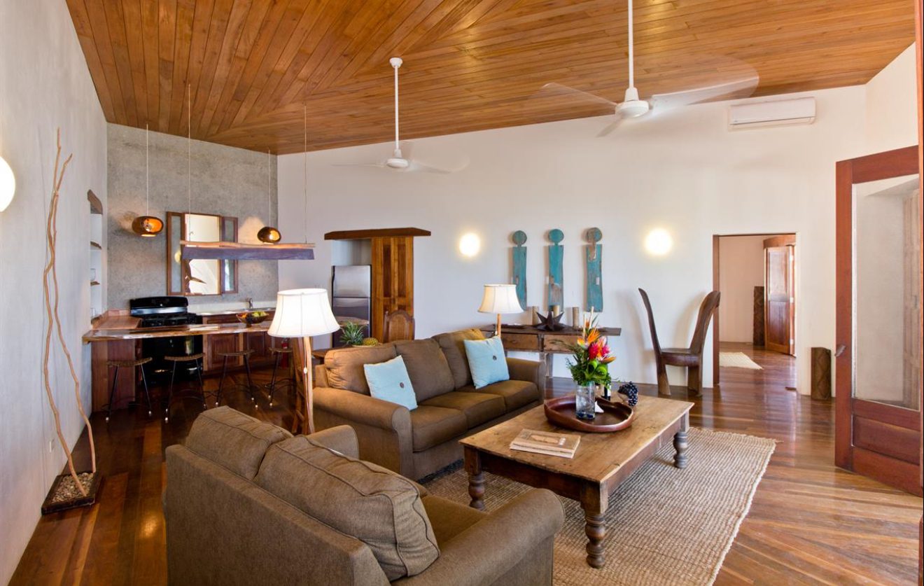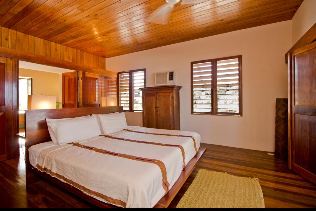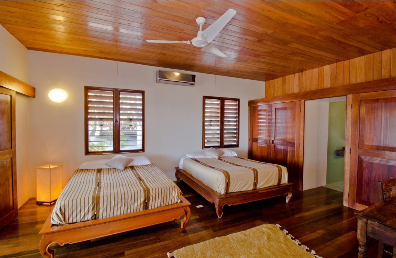 Designed with relaxation and functionality in mind, the villa features an open, flowing layout that maximizes natural light and sea views. Each bedroom is fully air-conditioned and beautifully finished with rich wooden flooring, painted ceilings, and tasteful wall colors that enhance the villa’s coastal charm. Both bedrooms open onto their own private screened-in decks, creating peaceful spaces to unwind while enjoying the ocean breeze.
