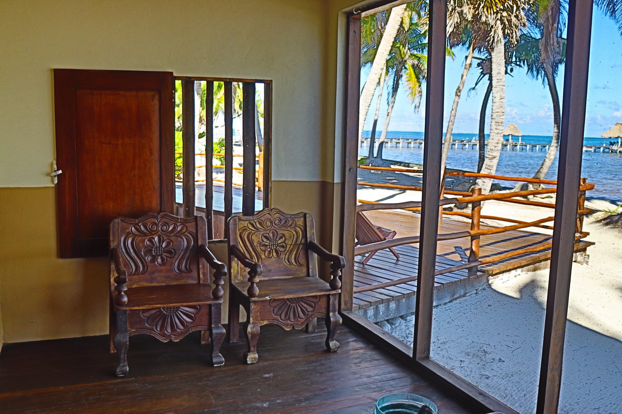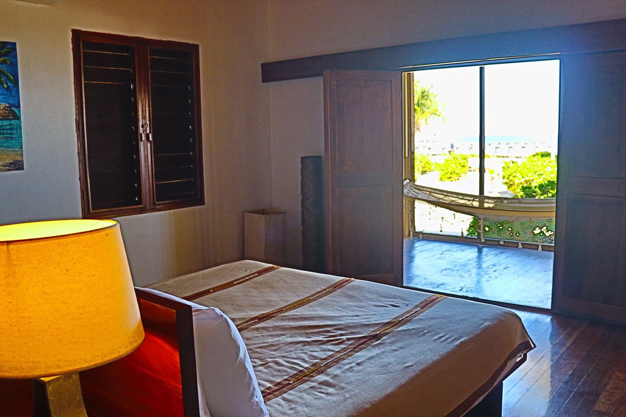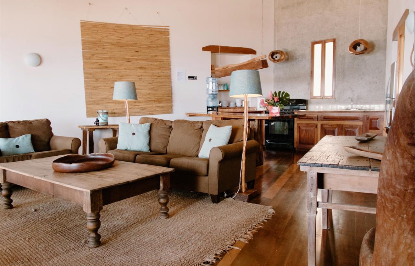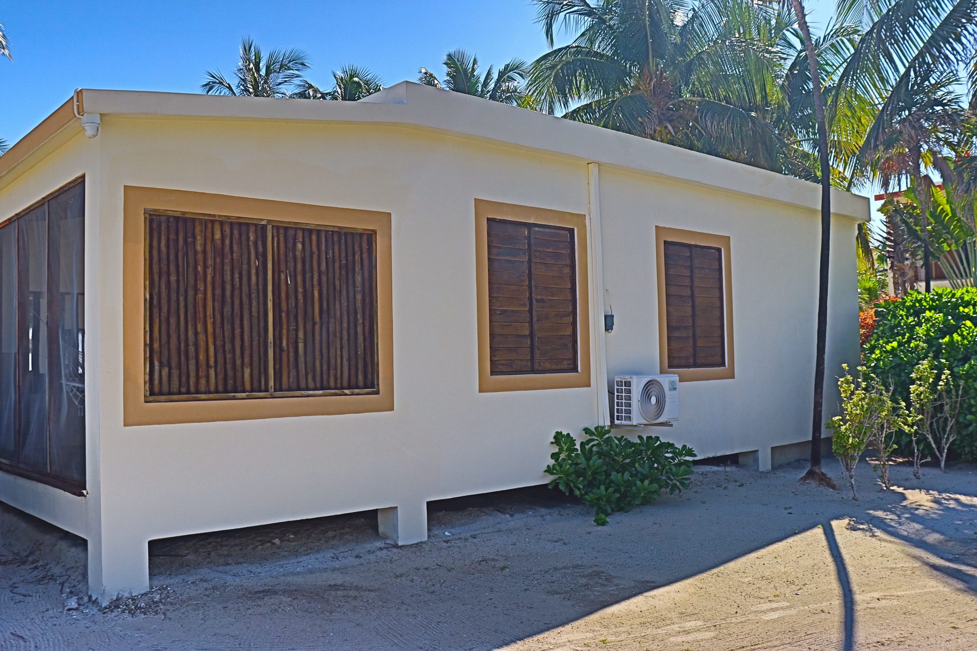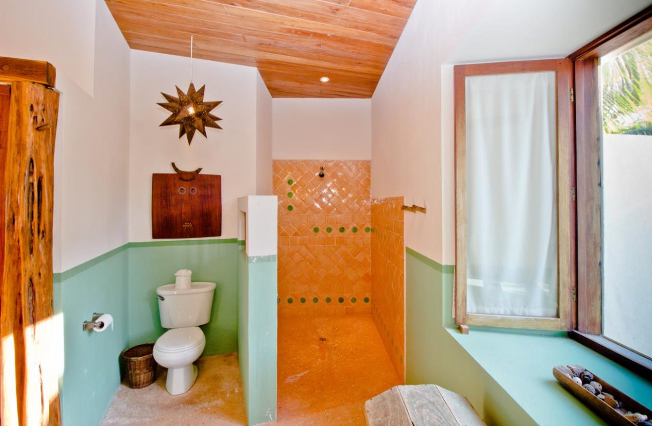 Designed with relaxation and functionality in mind, the villa features an open, flowing layout that maximizes natural light and sea views. Each bedroom is fully air-conditioned and beautifully finished with rich wooden flooring, painted ceilings, and tasteful wall colors that enhance the villa’s coastal charm. Both bedrooms open onto their own private screened-in decks, creating peaceful spaces to unwind while enjoying the ocean breeze.