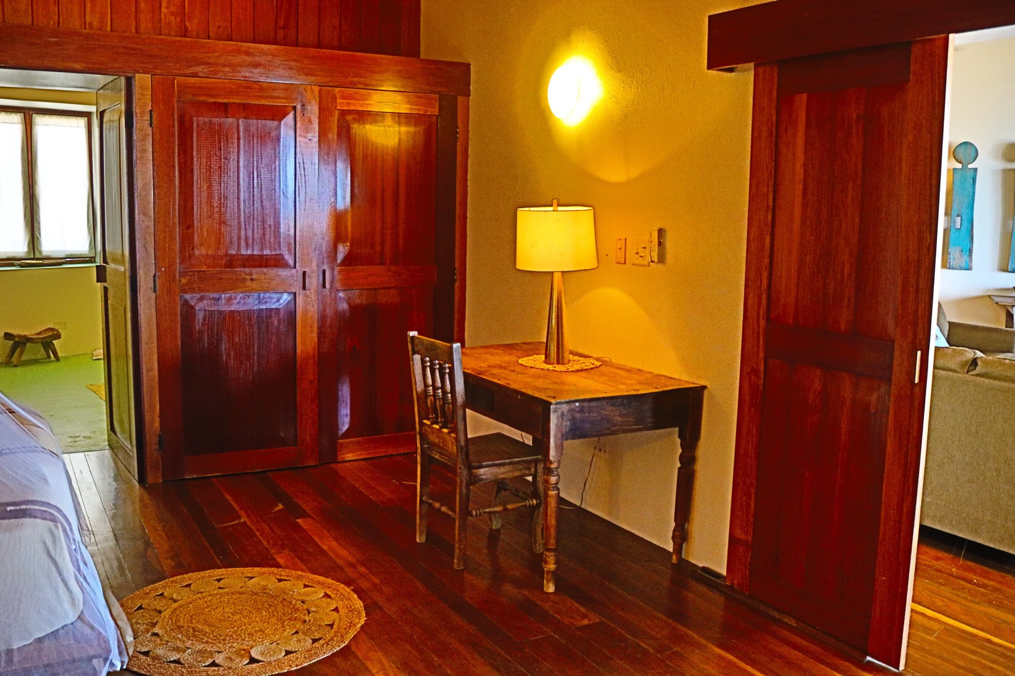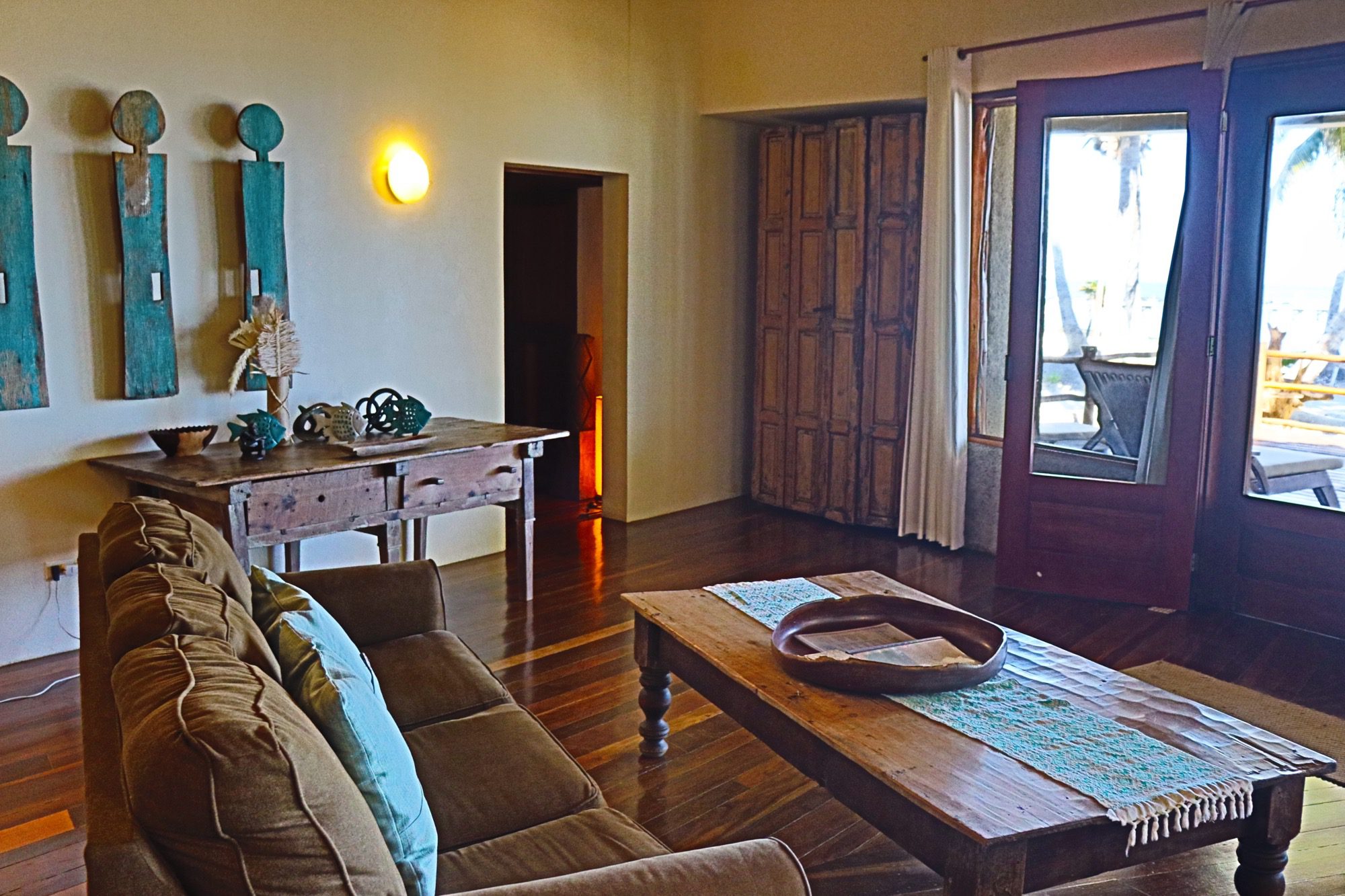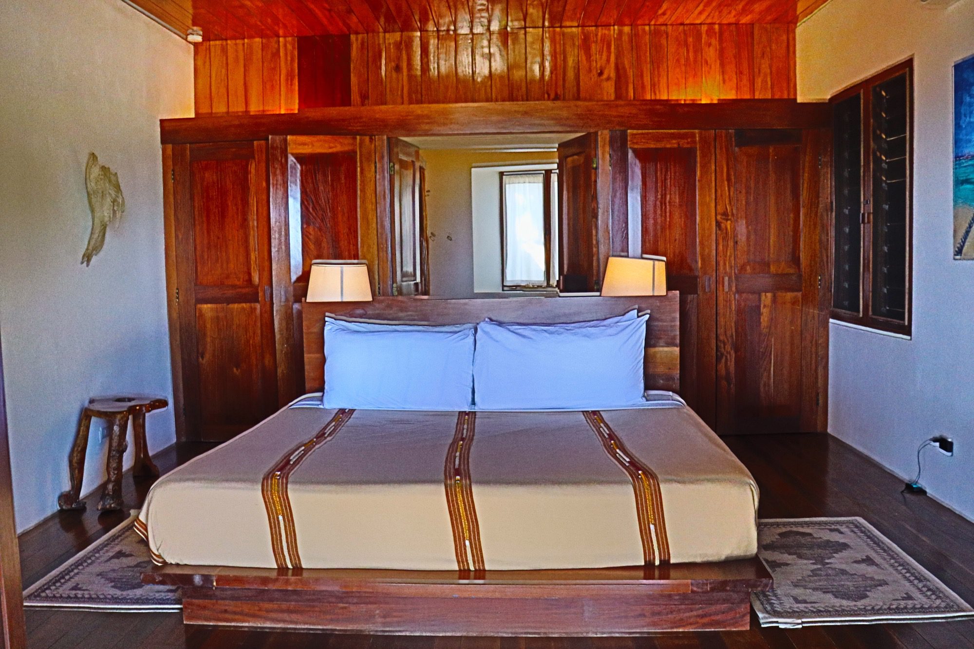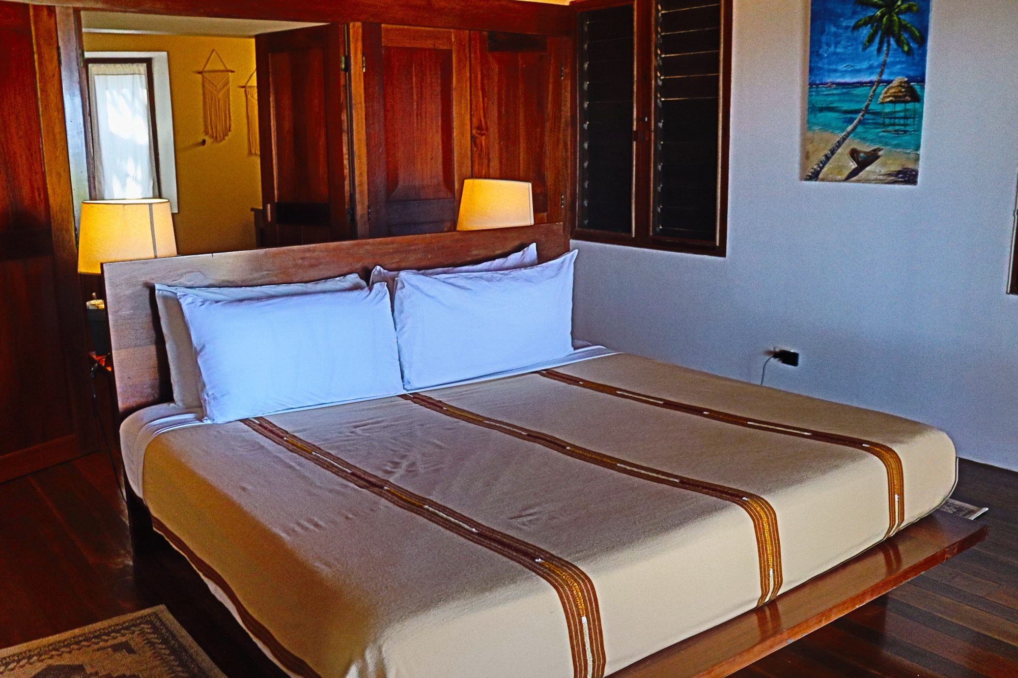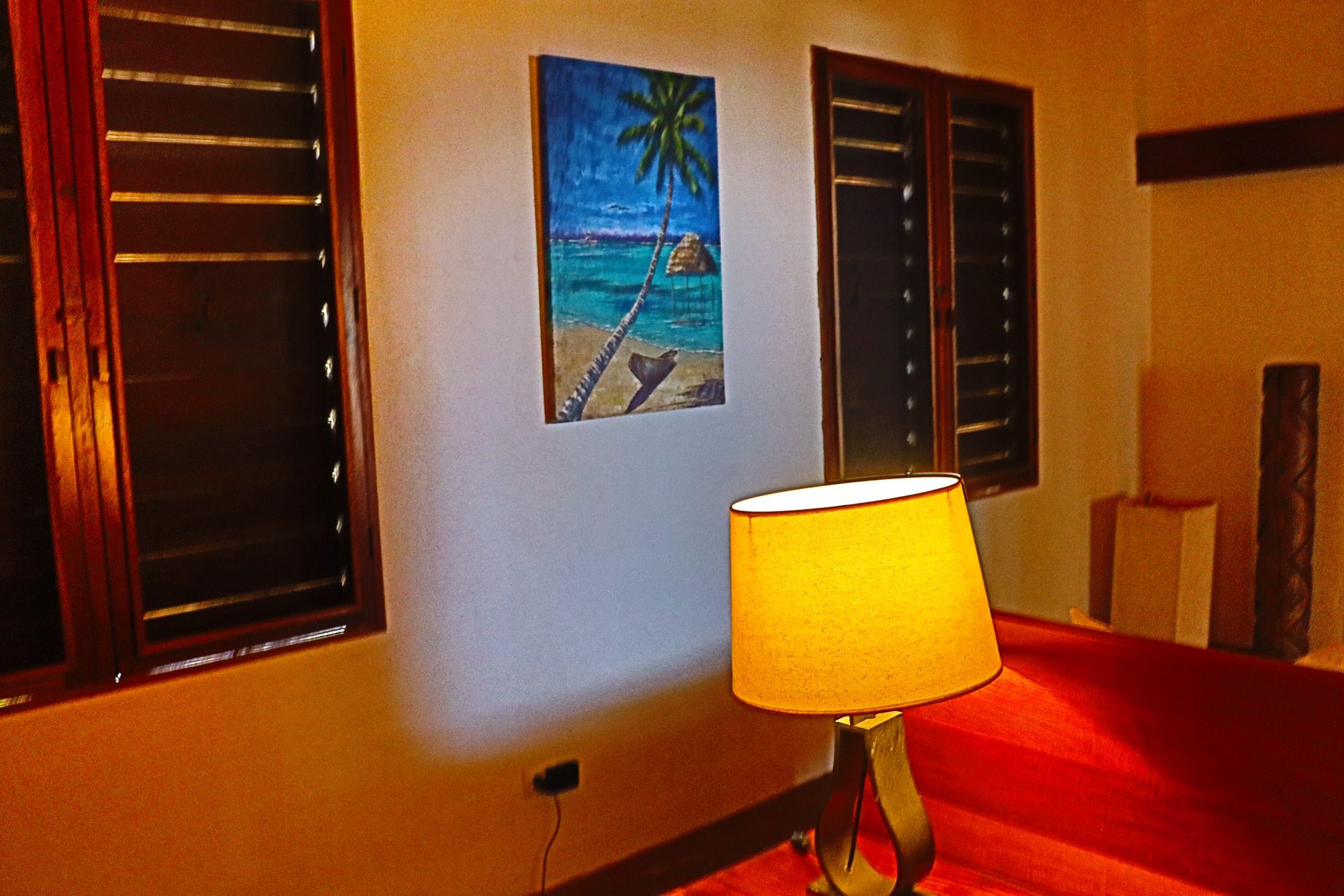 Designed with relaxation and functionality in mind, the villa features an open, flowing layout that maximizes natural light and sea views. Each bedroom is fully air-conditioned and beautifully finished with rich wooden flooring, painted ceilings, and tasteful wall colors that enhance the villa’s coastal charm. Both bedrooms open onto their own private screened-in decks, creating peaceful spaces to unwind while enjoying the ocean breeze.