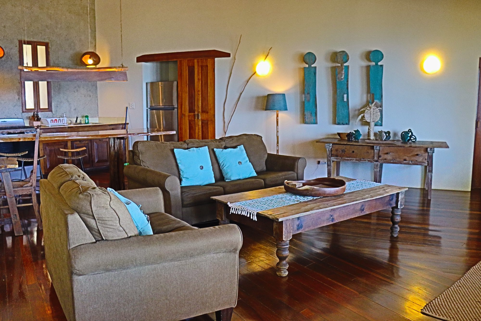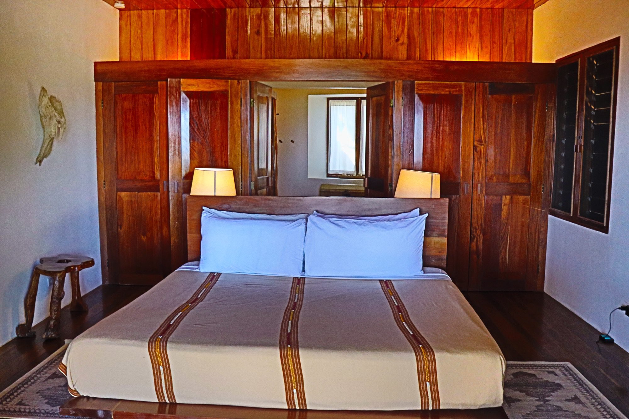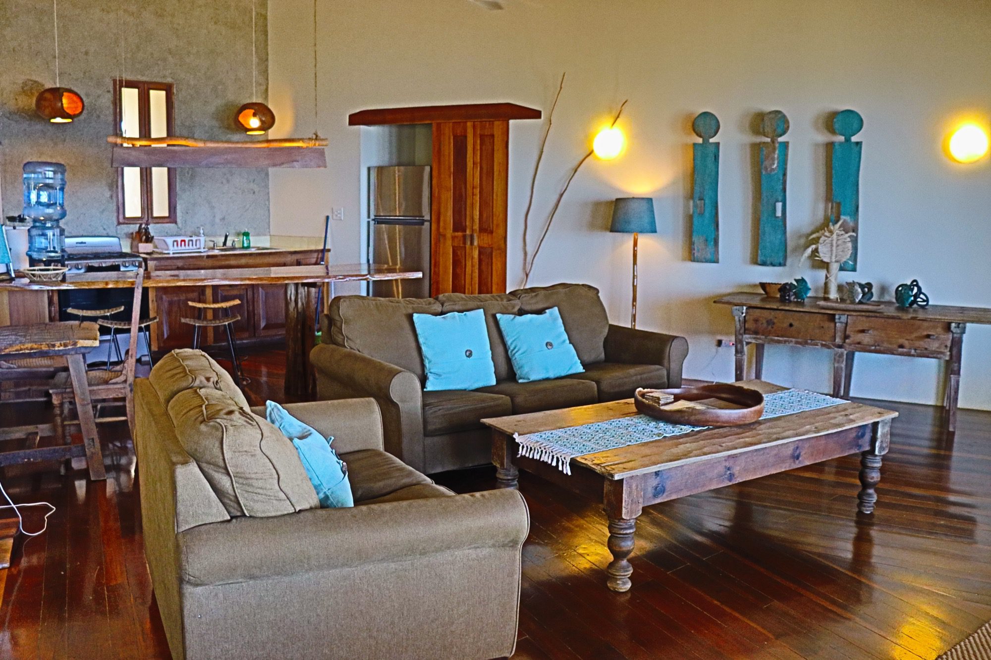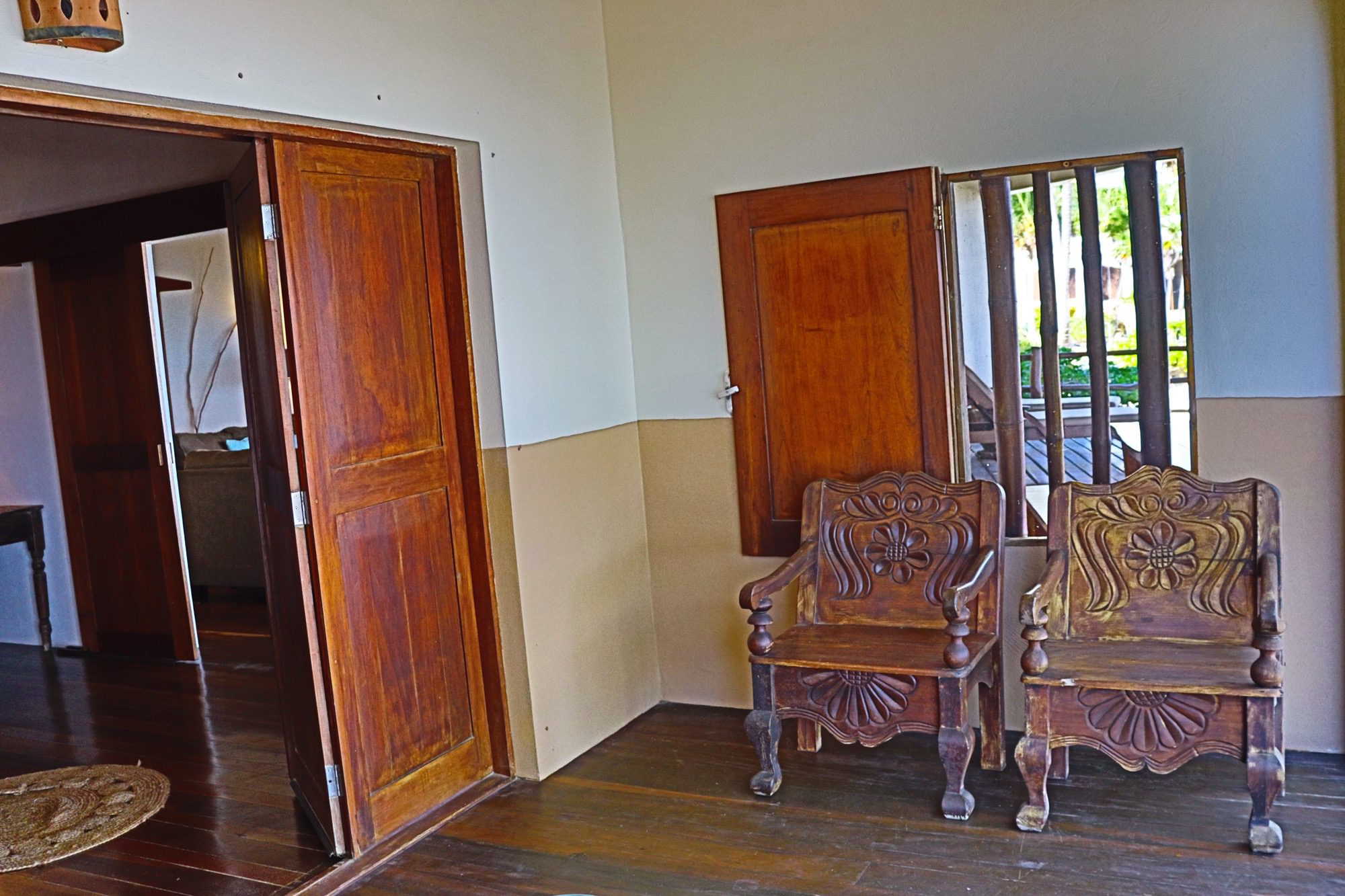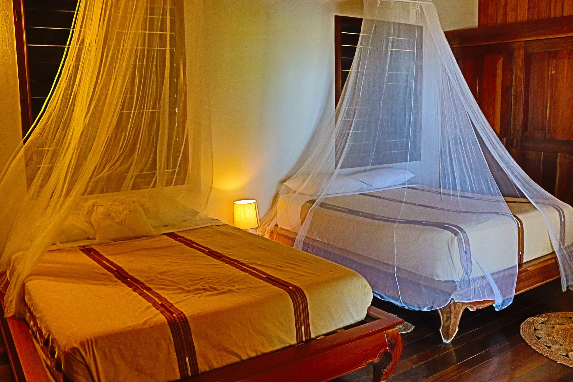 Designed with relaxation and functionality in mind, the villa features an open, flowing layout that maximizes natural light and sea views. Each bedroom is fully air-conditioned and beautifully finished with rich wooden flooring, painted ceilings, and tasteful wall colors that enhance the villa’s coastal charm. Both bedrooms open onto their own private screened-in decks, creating peaceful spaces to unwind while enjoying the ocean breeze.