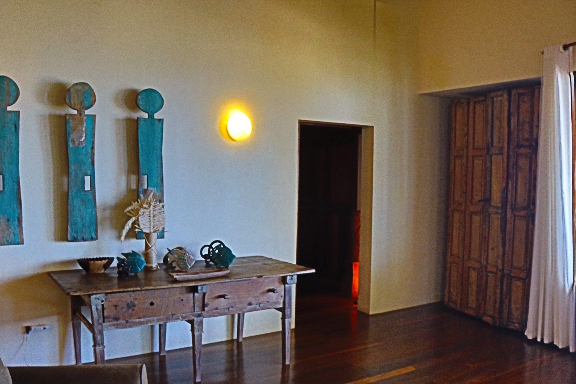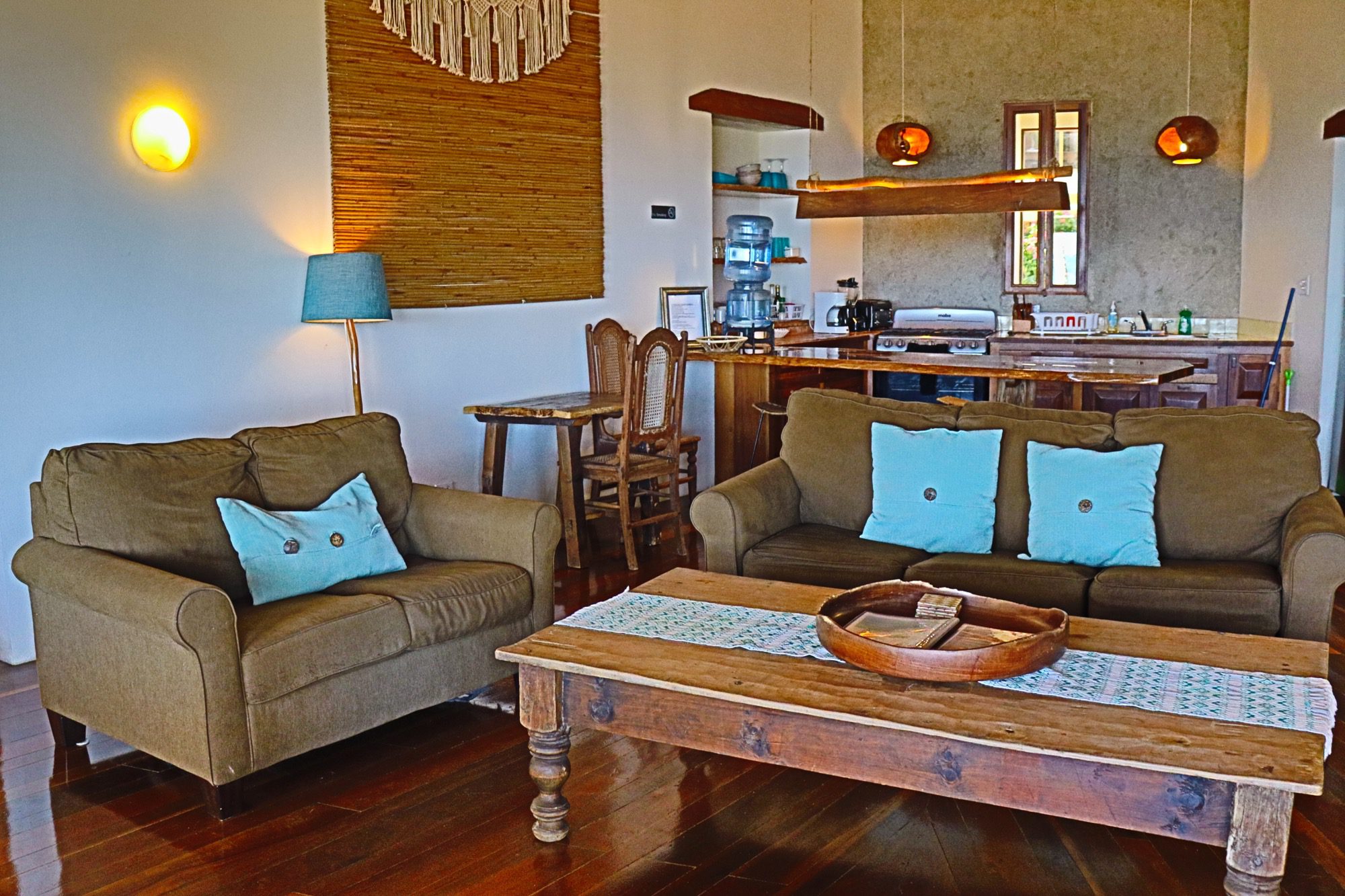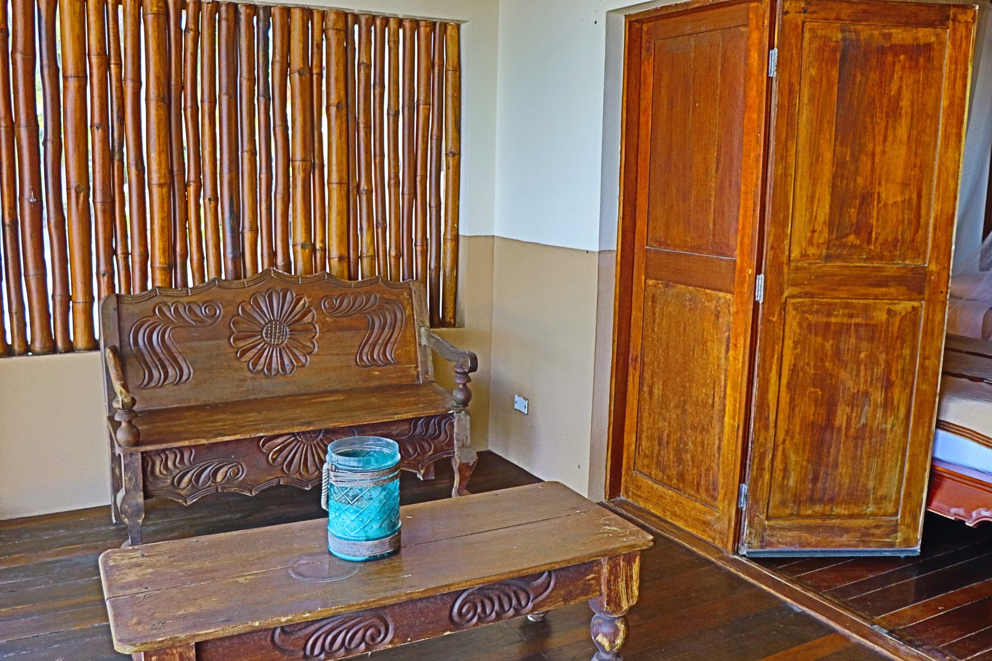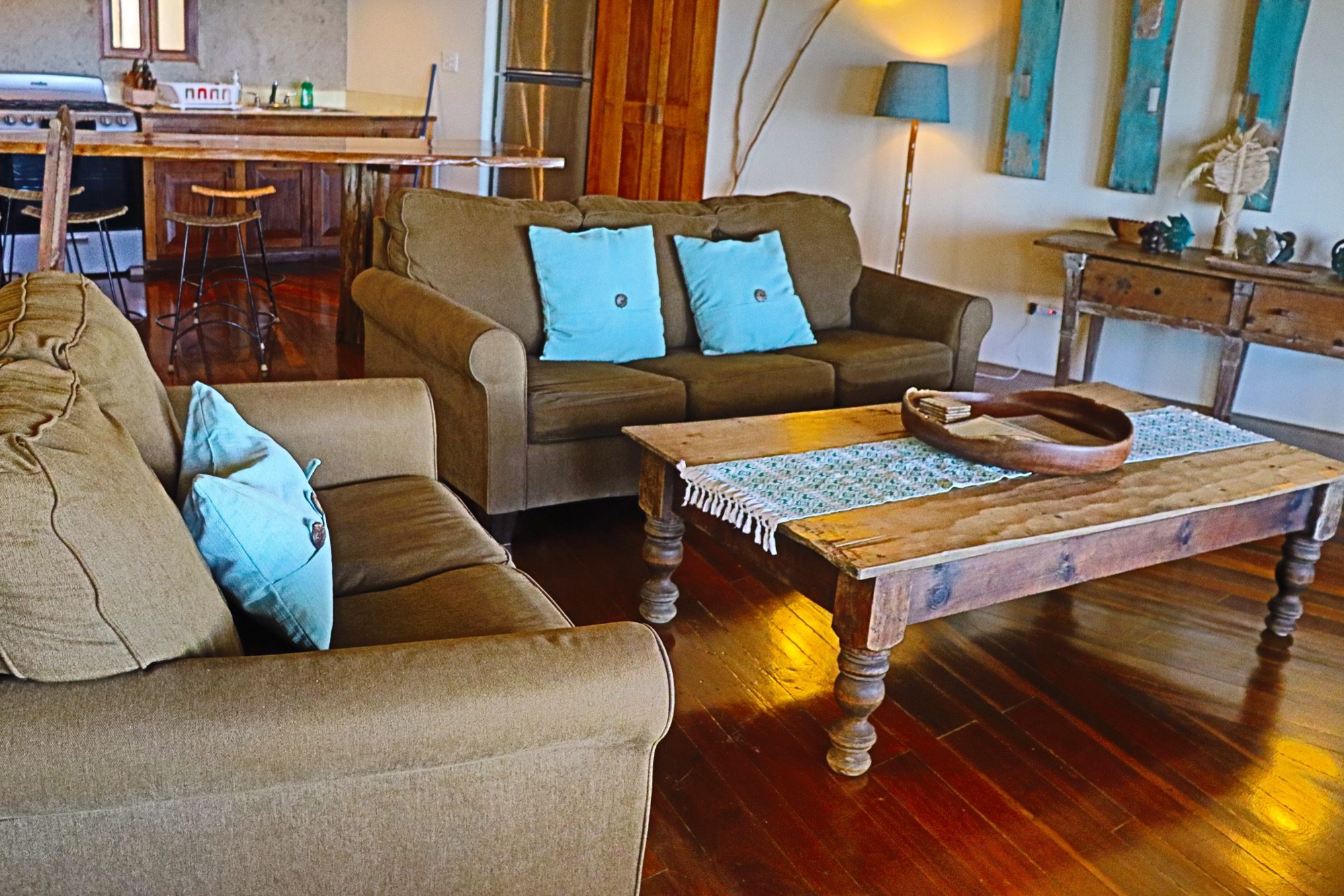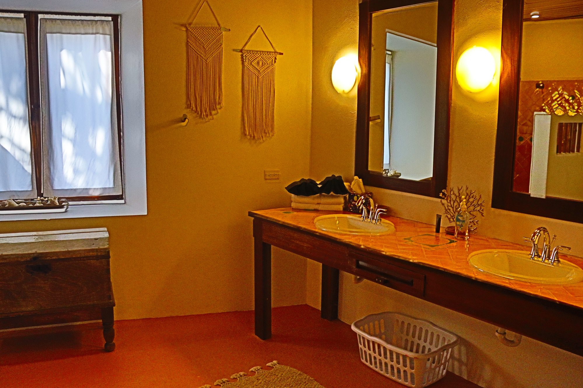 Designed with relaxation and functionality in mind, the villa features an open, flowing layout that maximizes natural light and sea views. Each bedroom is fully air-conditioned and beautifully finished with rich wooden flooring, painted ceilings, and tasteful wall colors that enhance the villa’s coastal charm. Both bedrooms open onto their own private screened-in decks, creating peaceful spaces to unwind while enjoying the ocean breeze.