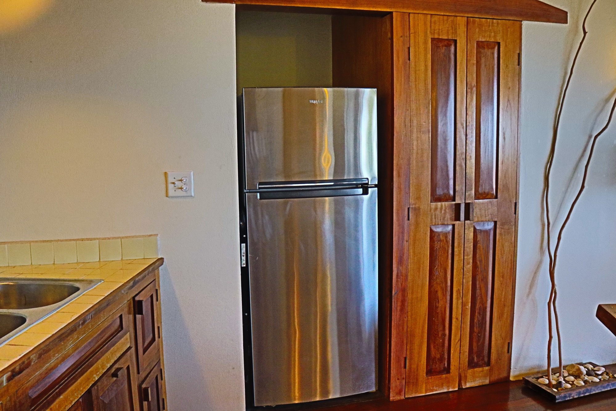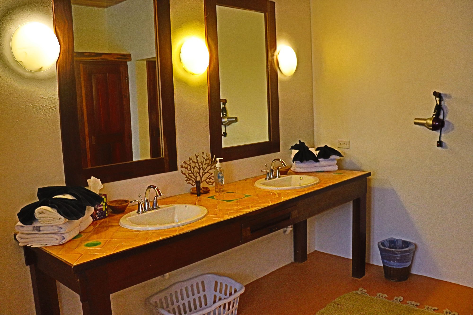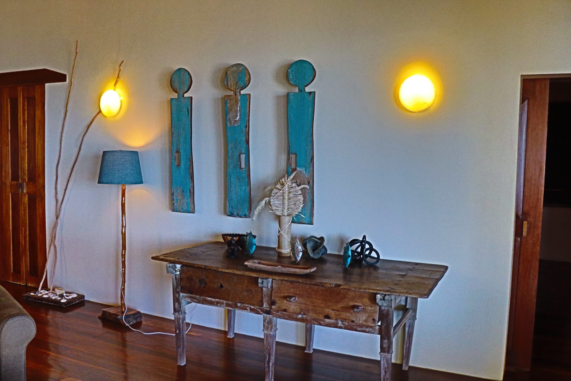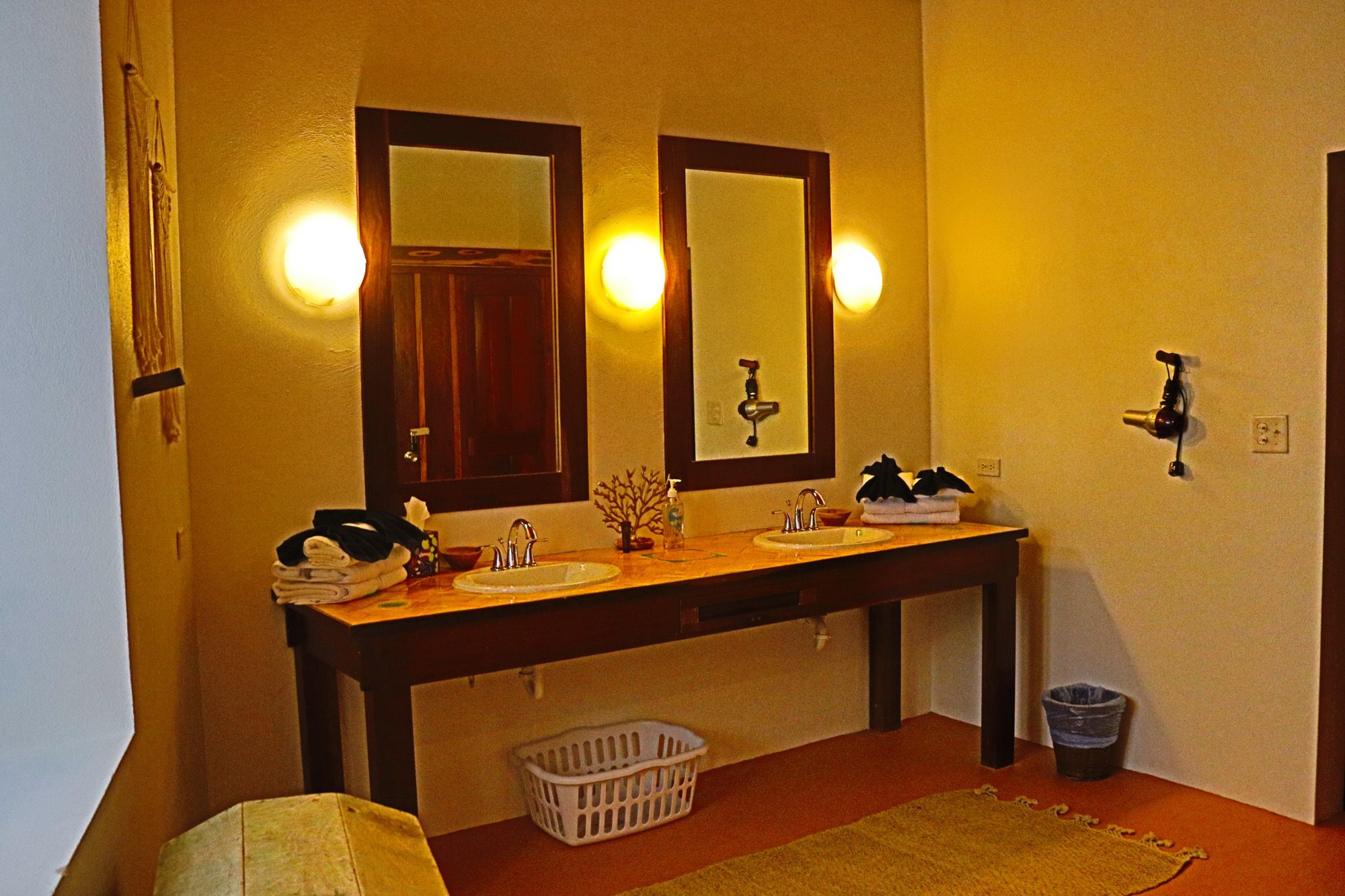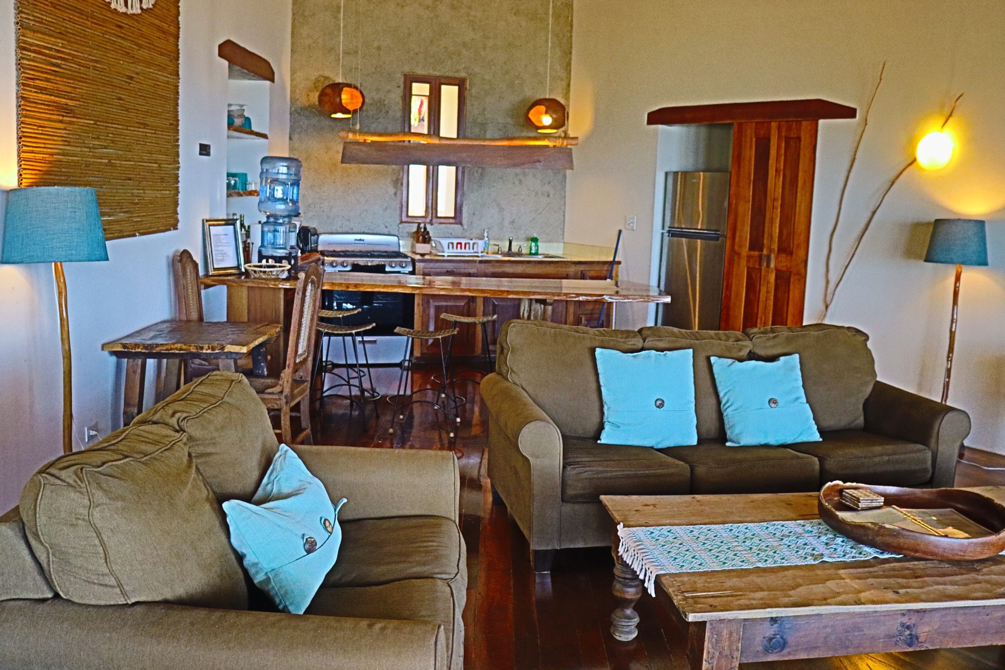Designed with relaxation and functionality in mind, the villa features an open, flowing layout that maximizes natural light and sea views. Each bedroom is fully air-conditioned and beautifully finished with rich wooden flooring, painted ceilings, and tasteful wall colors that enhance the villa’s coastal charm. Both bedrooms open onto their own private screened-in decks, creating peaceful spaces to unwind while enjoying the ocean breeze.